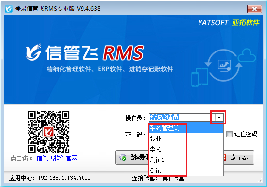 信管飛RMS軟件具備強大的操作員管理功能。在軟件的“系統管理-操作員及授權”模塊中,系統管理員可以方便地添加新的操作員,并根據企業的實際需求,為每個操作員精準分配不同的操作權限。添加完成后,在軟件客戶端程序的登錄界面,操作員列表會清晰展示所有可登錄的操作員名字,方便大家快速識別和選擇。