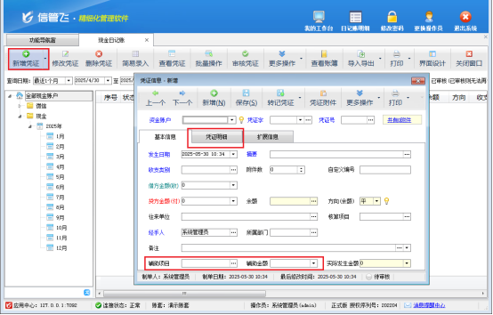 在企業(yè)的日常運營中,出納記賬作為財務(wù)管理的關(guān)鍵環(huán)節(jié),其準(zhǔn)確性與高效性直接關(guān)系到企業(yè)資金流的清晰與穩(wěn)定。今天,就為大家深入剖析信管飛出納記賬軟件在新增憑證時,針對憑證明細(xì)和輔助項目所具備的靈活設(shè)置功能,助力企業(yè)輕松達(dá)成精細(xì)化財務(wù)管理目標(biāo)。