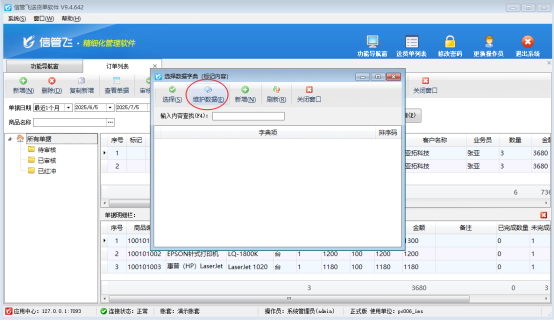 訂單列表界面,雙擊標記備注項,點擊維護標記備注內容,進入選擇數據字典(標記內容)界面,點擊維護數據可進入標記內容維護。