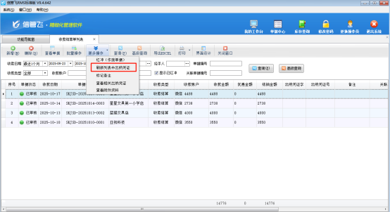 完成界面配置后,用戶只需在工具欄的“更多操作”中點擊“刷新列表中出納憑證”,系統(tǒng)就會自動更新列表信息。此時,那些已經(jīng)轉(zhuǎn)記了出納憑證的收款結(jié)算單就會顯示憑證字和憑證號,而未轉(zhuǎn)記的則顯示為空白。