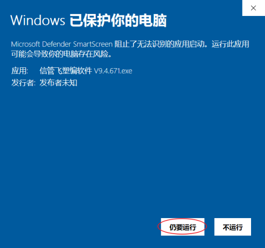您好!非常感謝您選擇下載并使用信管飛系列管理軟件。在您使用軟件的過程中,我們留意到部分用戶在 Windows 10 或 Windows 11 系統上,從官方網站下載軟件安裝包后運行時,可能會遇到名為“Windows Defender SmartScreen”的系統安全功能彈出的攔截提示。
